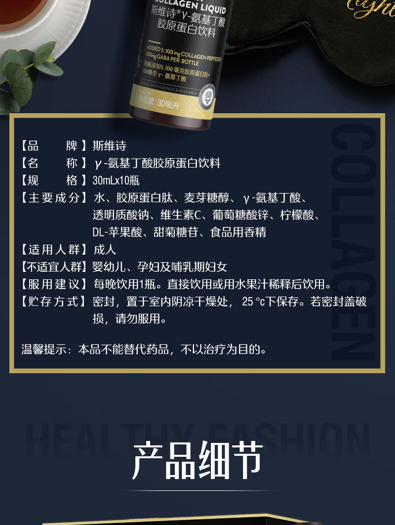 商品名称:斯维诗氨基丁酸胶原蛋白GABA水光瓶30ml*10瓶