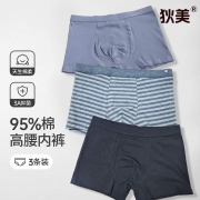 狄美男士四角透气抗菌内裤3条装(颜色随机)6091-1